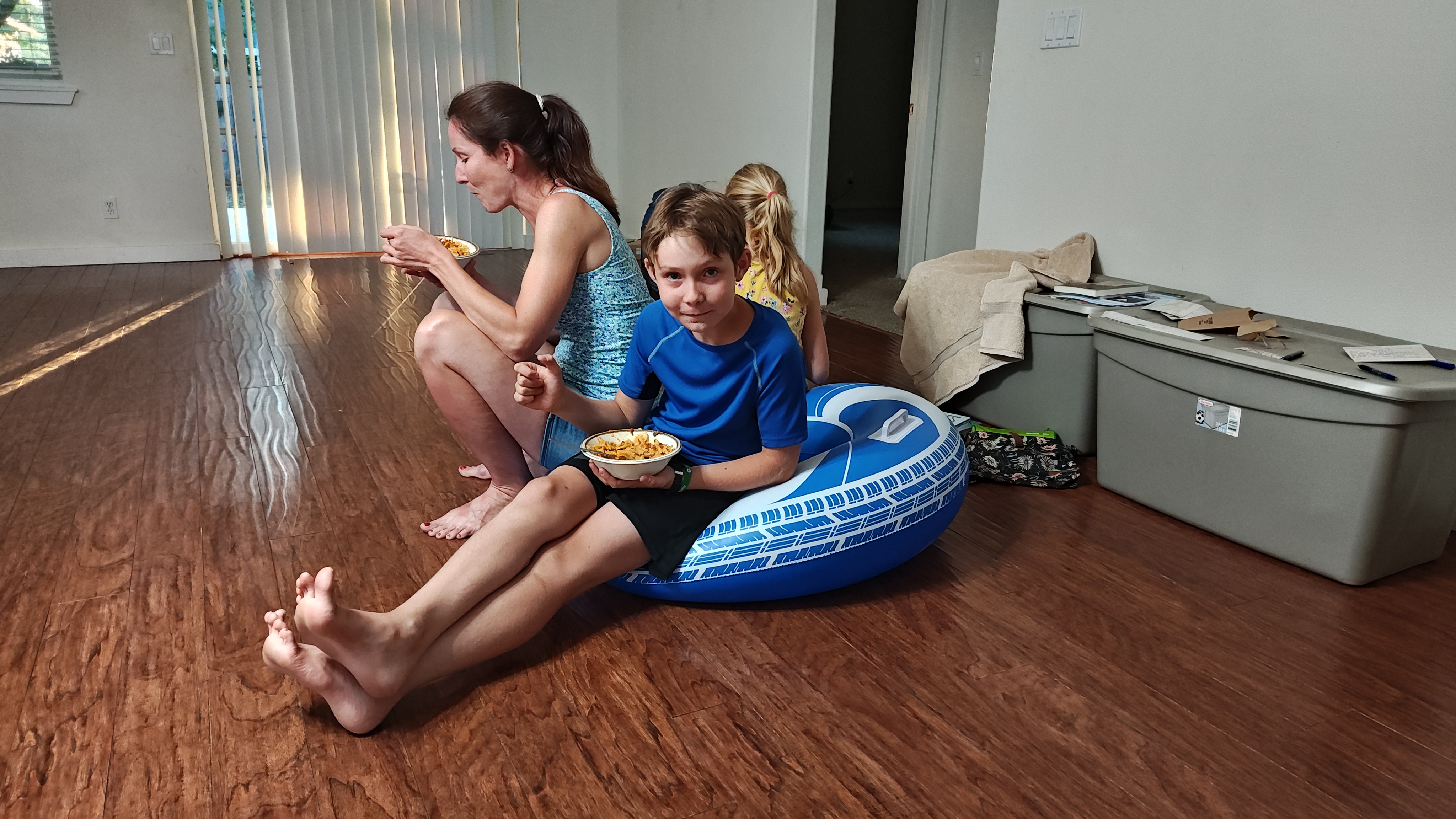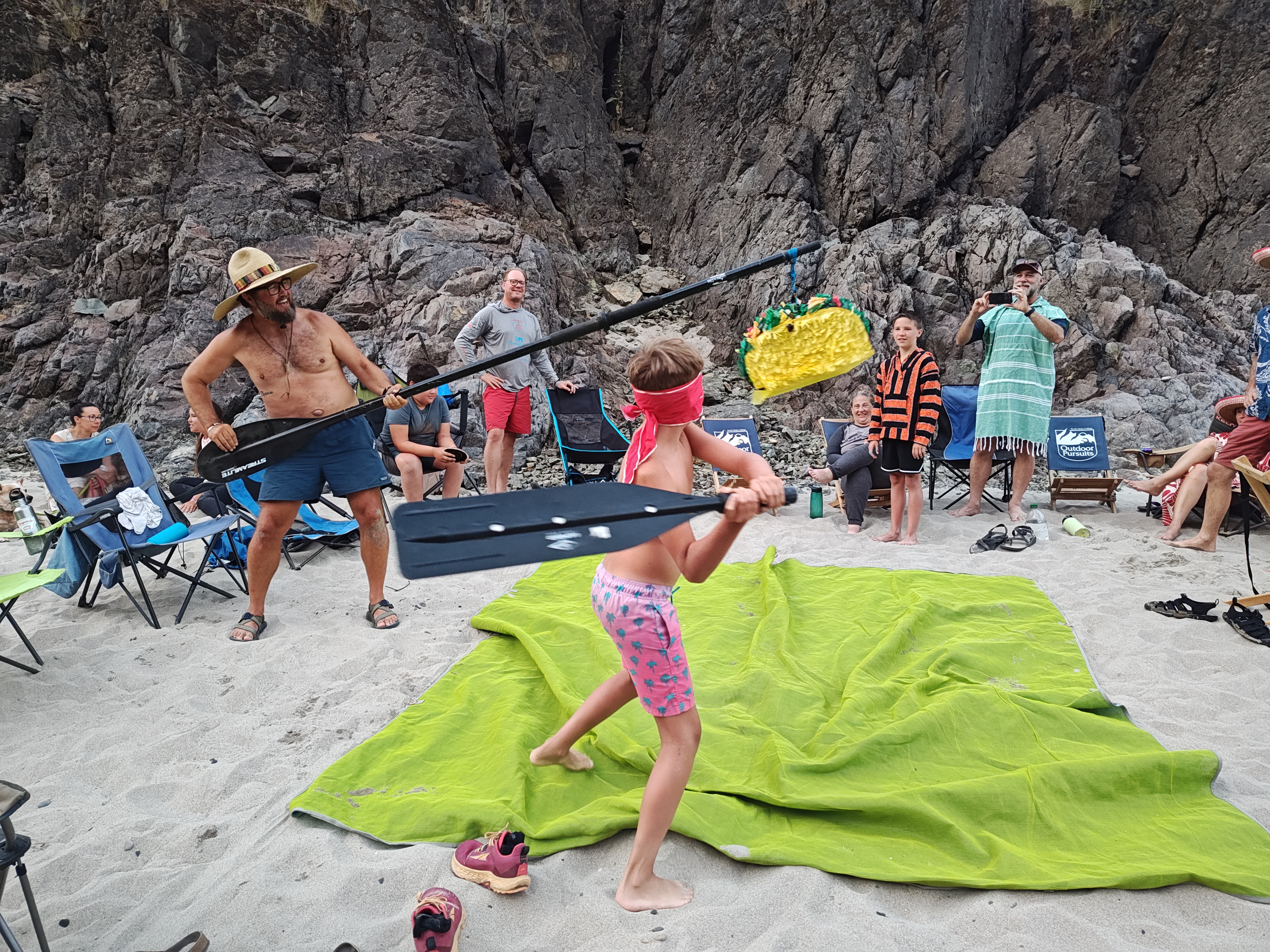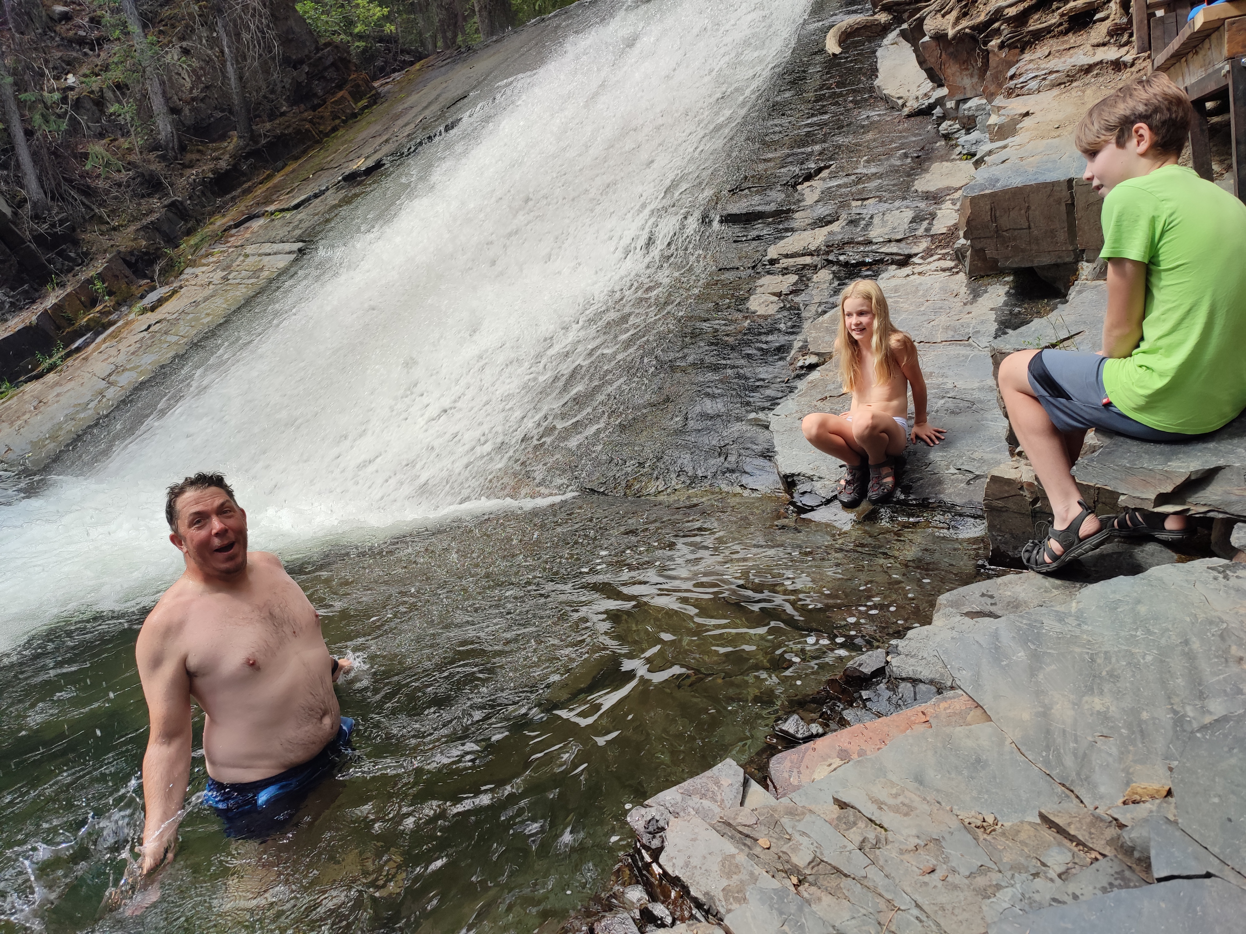 Děti byly po většinu času v “samovylévacím” nafukovacím kajaku (self-bailing kayak). V tomto kajaku sedíte neustále v 10 – 20 cm vody, ale zato nemusíte řešit, jako třeba na těchto videích, že vás zalila vlna…