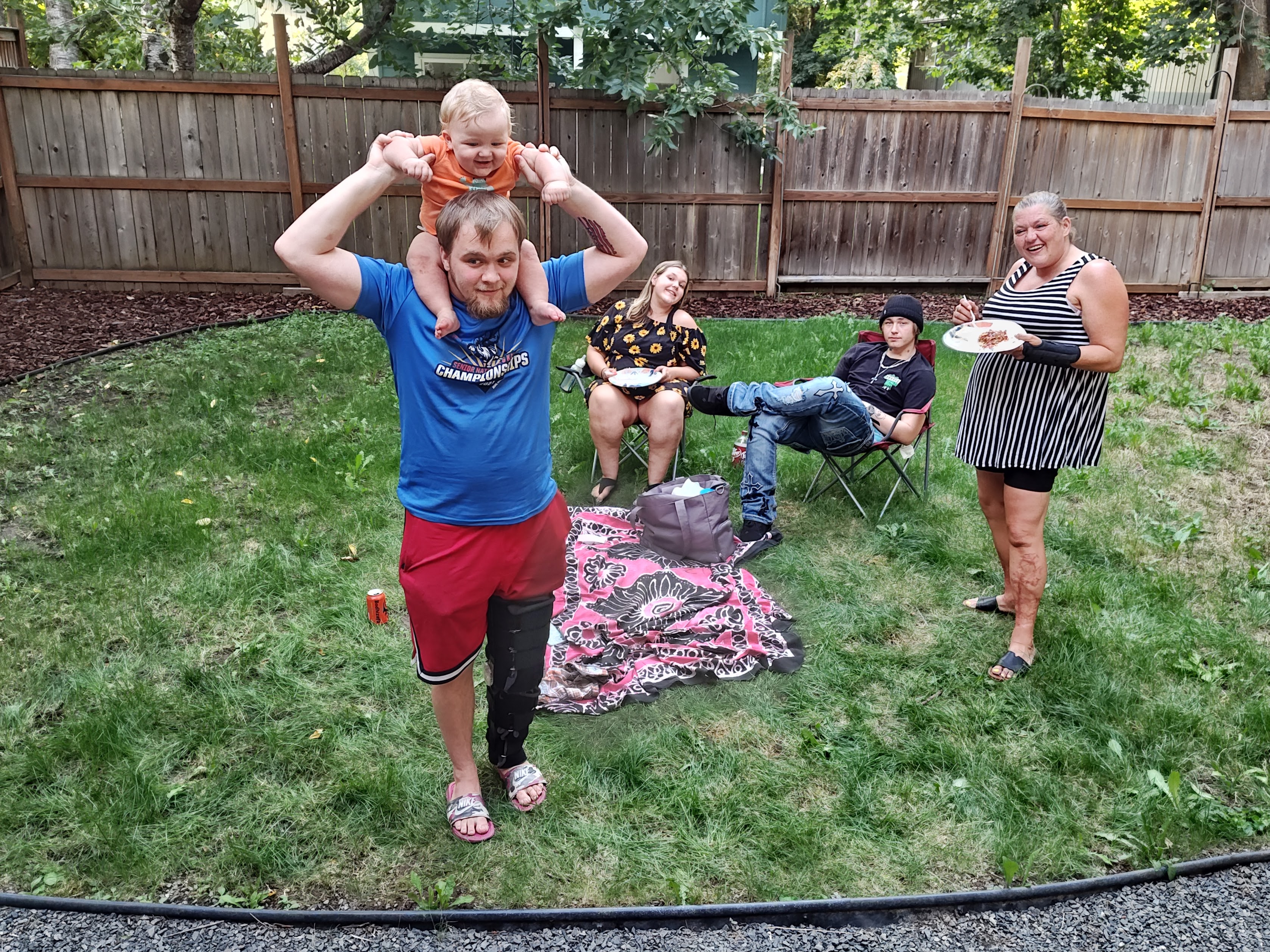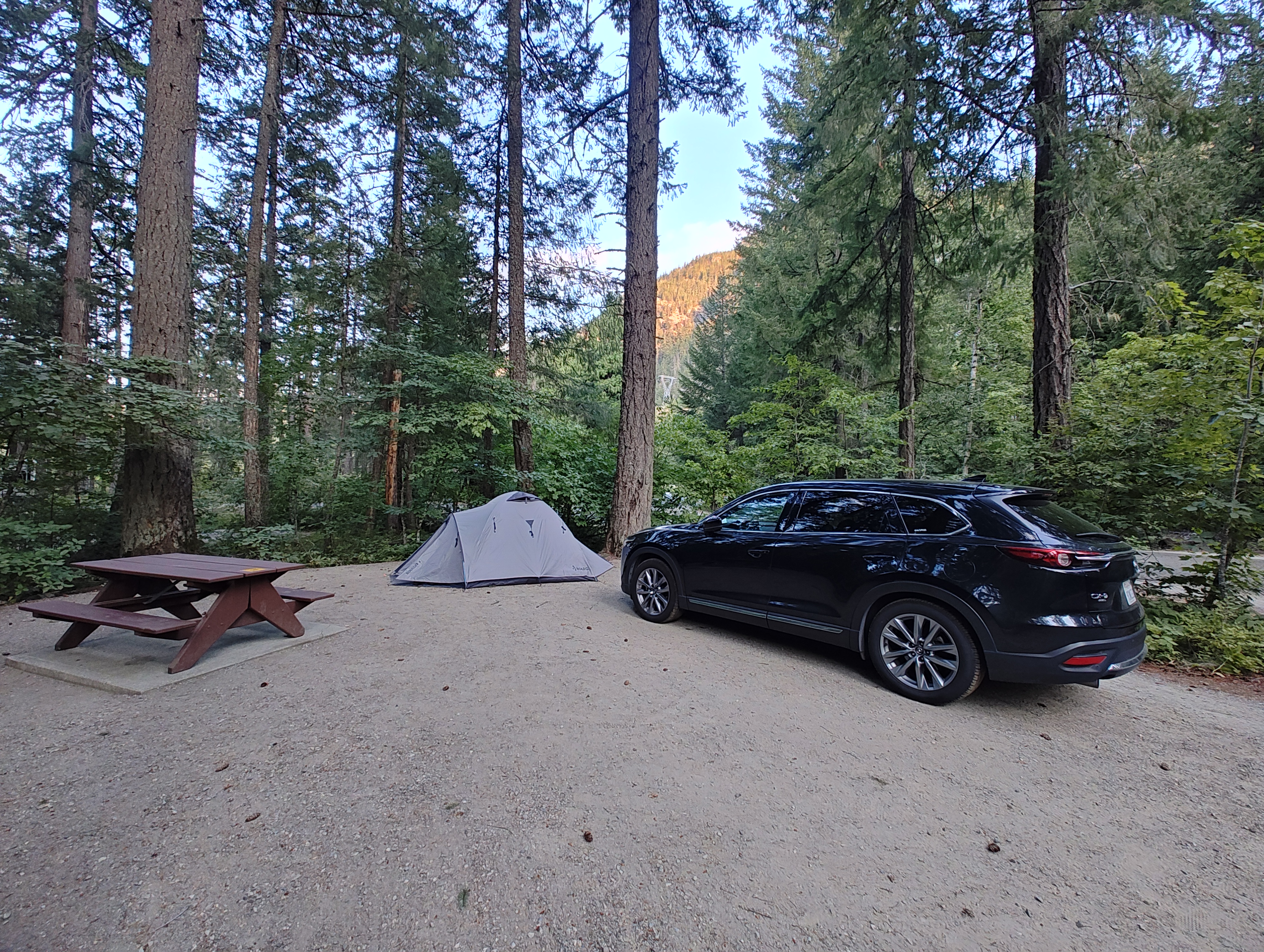 Z jedné strašlivě těžké kovové krabice se vyklubala komplet vybavená kuchyň, a tak se stalo, že jsme měli každé ráno a večer teplé jídlo servírované na plastových talířích a jedli jsme kovovými příbory. (V porovnání s množstvím jednorázových talířů a příborů všude jinde to na mě působilo velmi úlevně.)