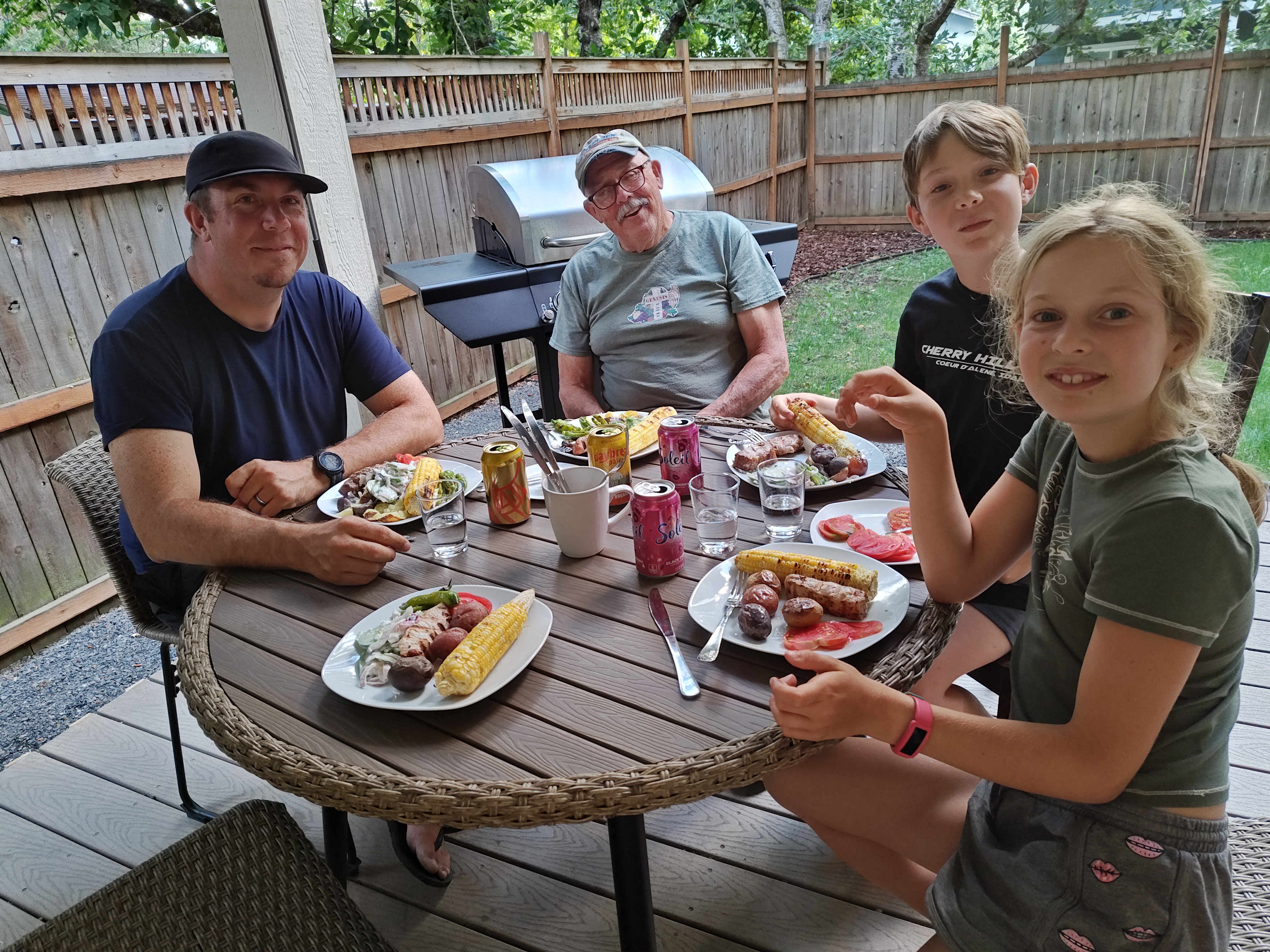 K snídani se podávali vejce, slané i sladké muffiny, klobásky, čerstvé ovoce; k večeři tažené vepřové maso, kari s kuřecím masem a rýží, hamburgery, chilli con carne; po večeři pak vždy desert – domácí zmrzlina, dýňový koláč, cookies, brownies…