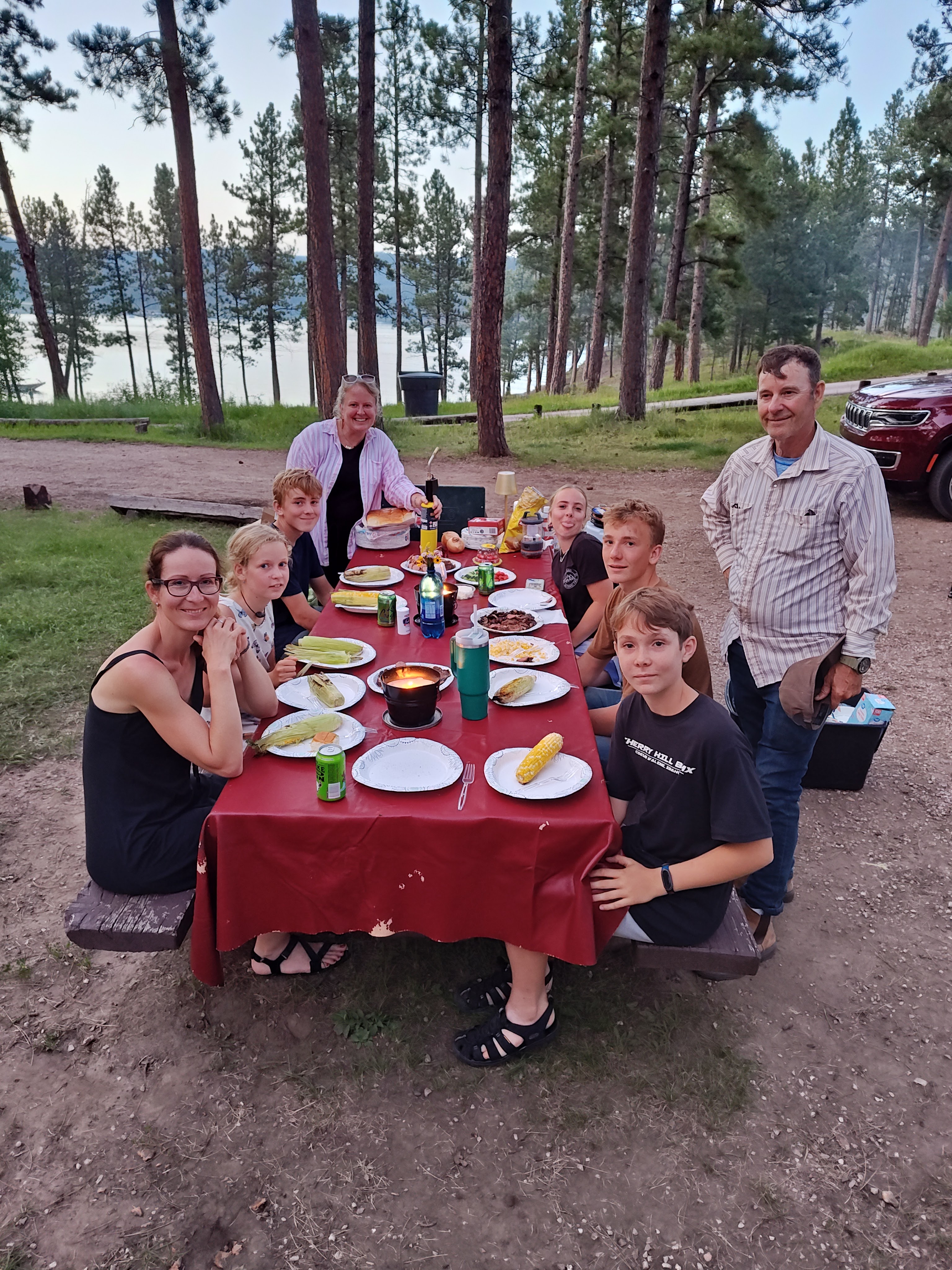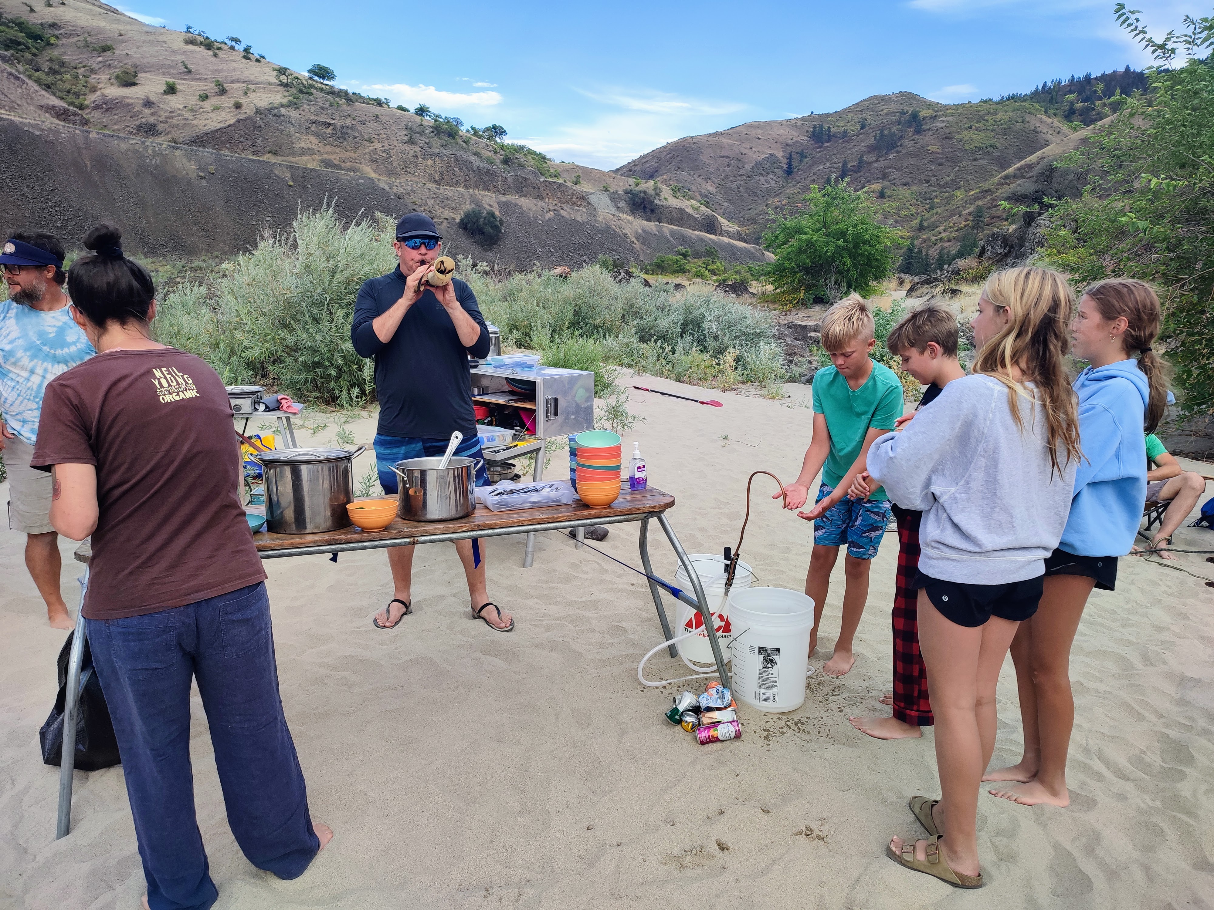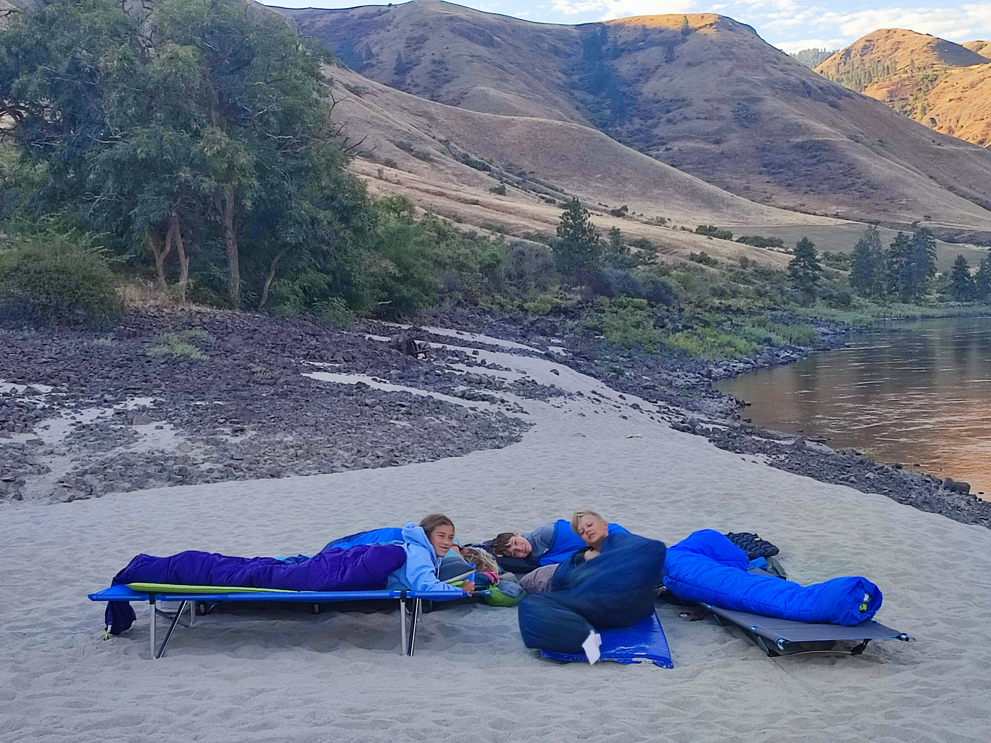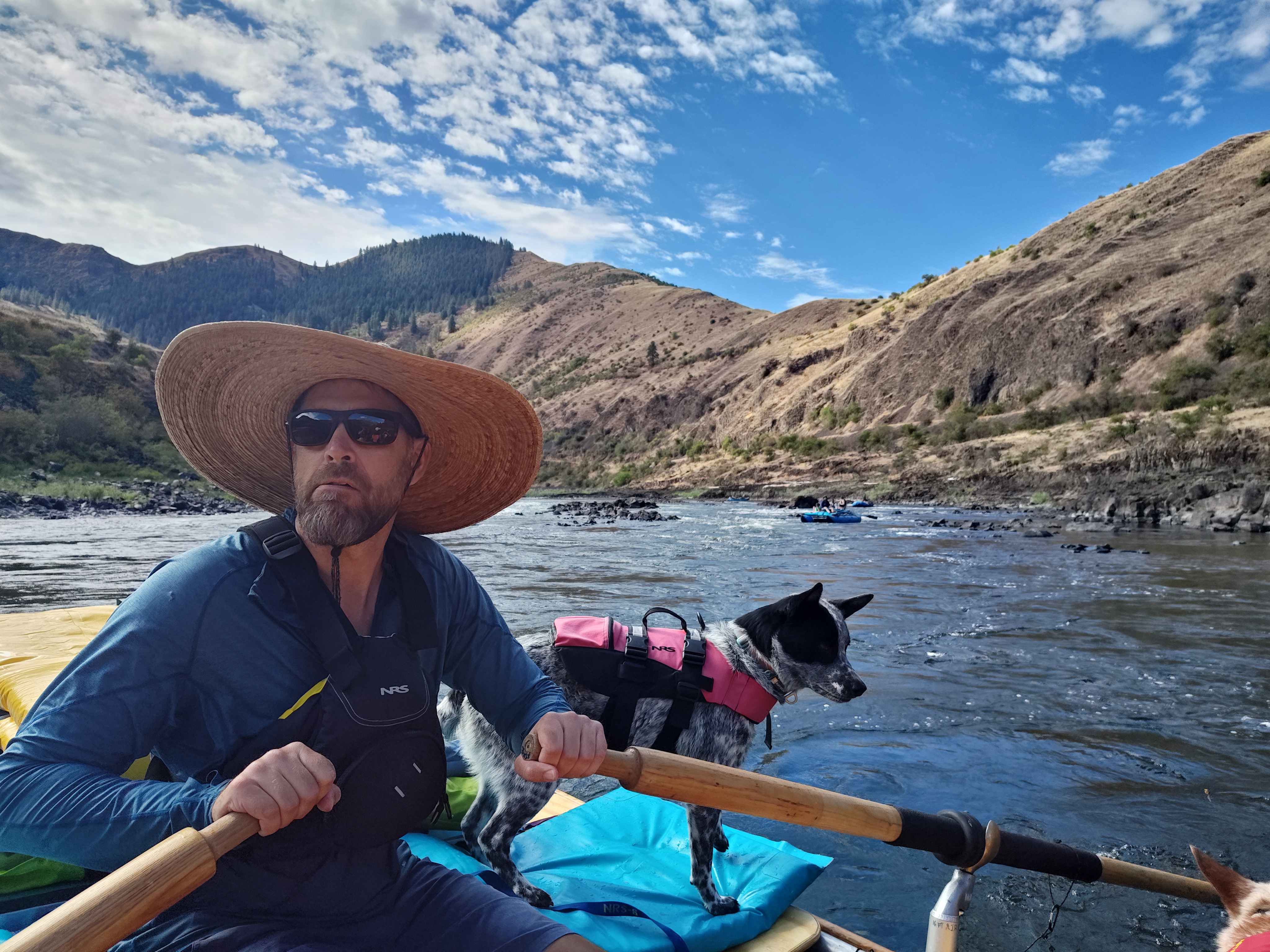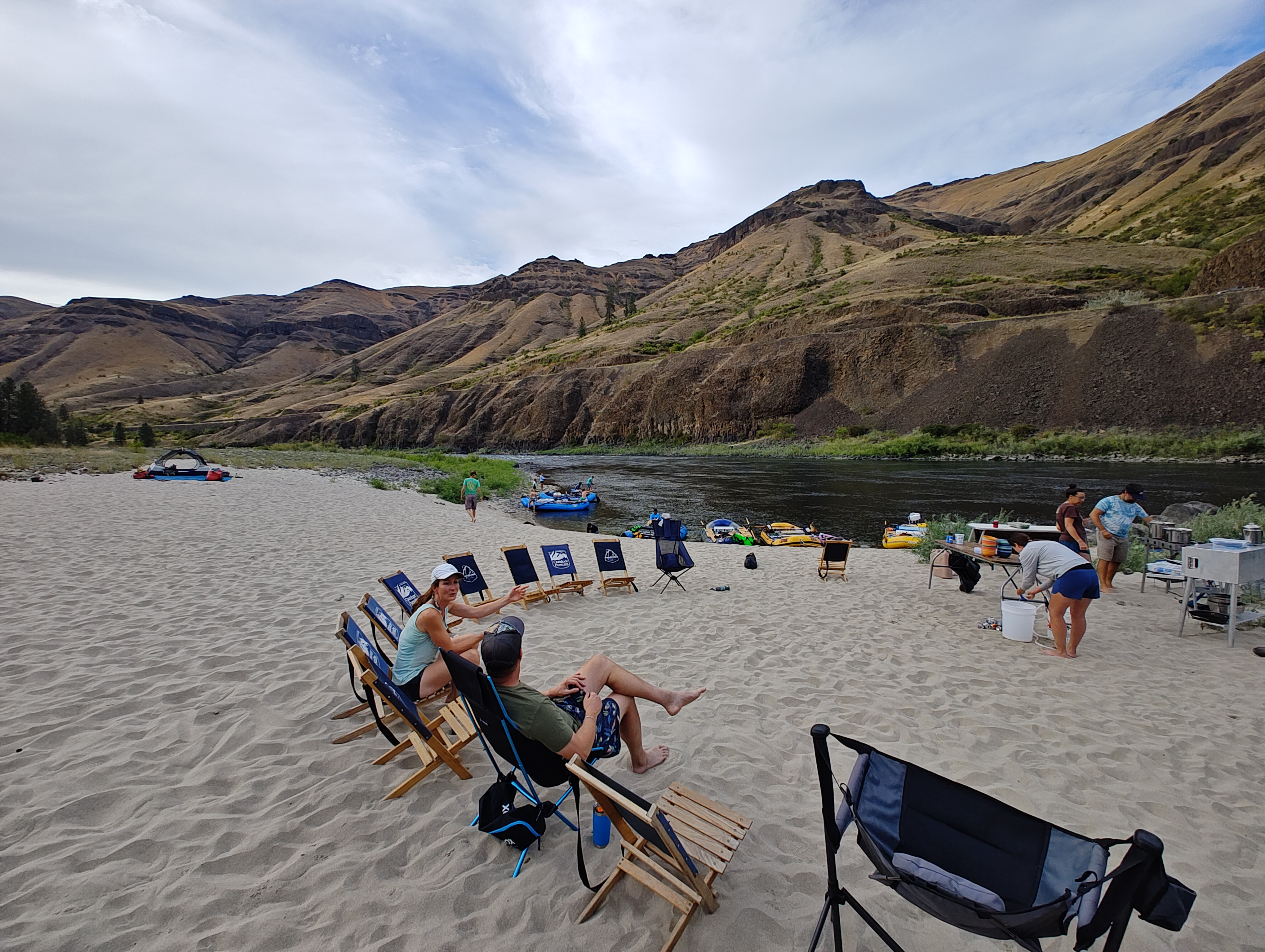 Čekal nás pětidenní 115 km dlouhý sjezd Salmon a Snake River (82 km na Salmon a poté 33 na Snake). Celkem nás na 6 raftech jelo 13 dospělých, 9 dětí a 4 psi.