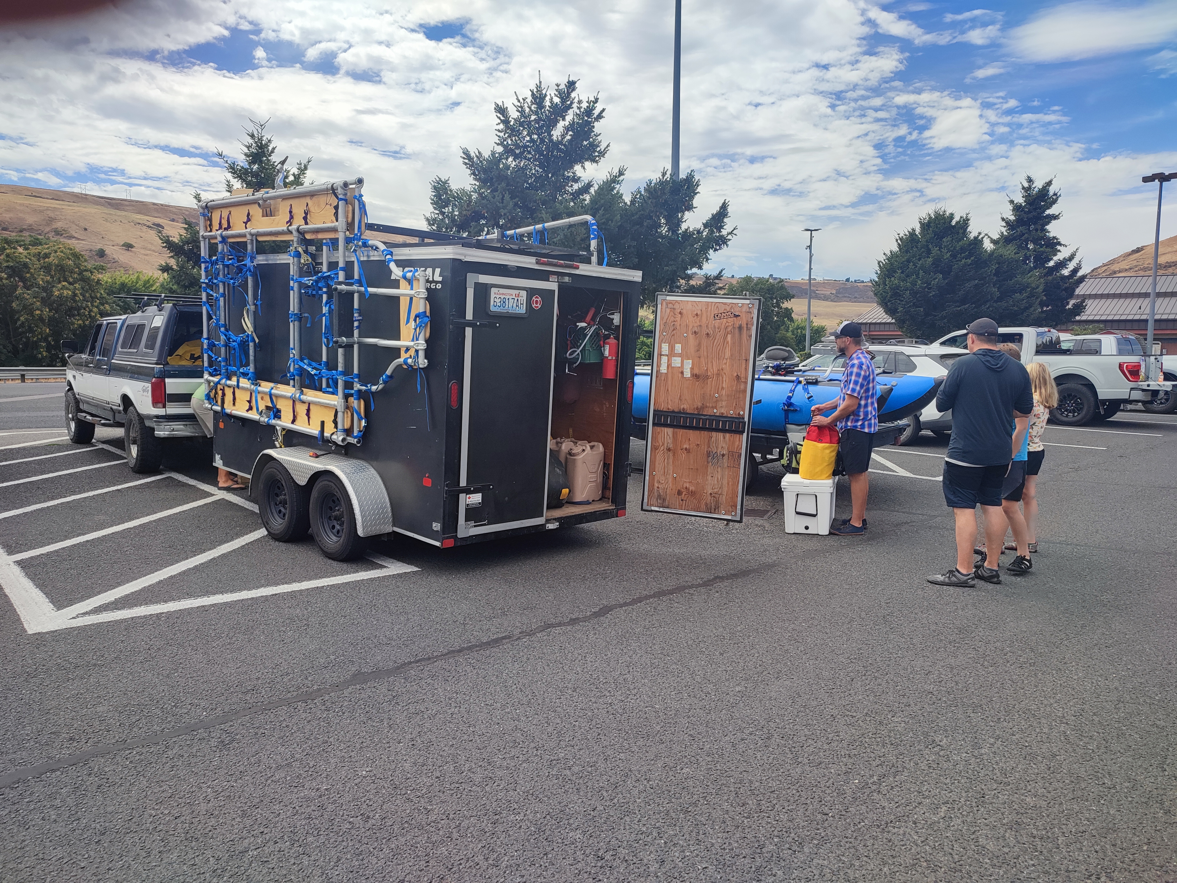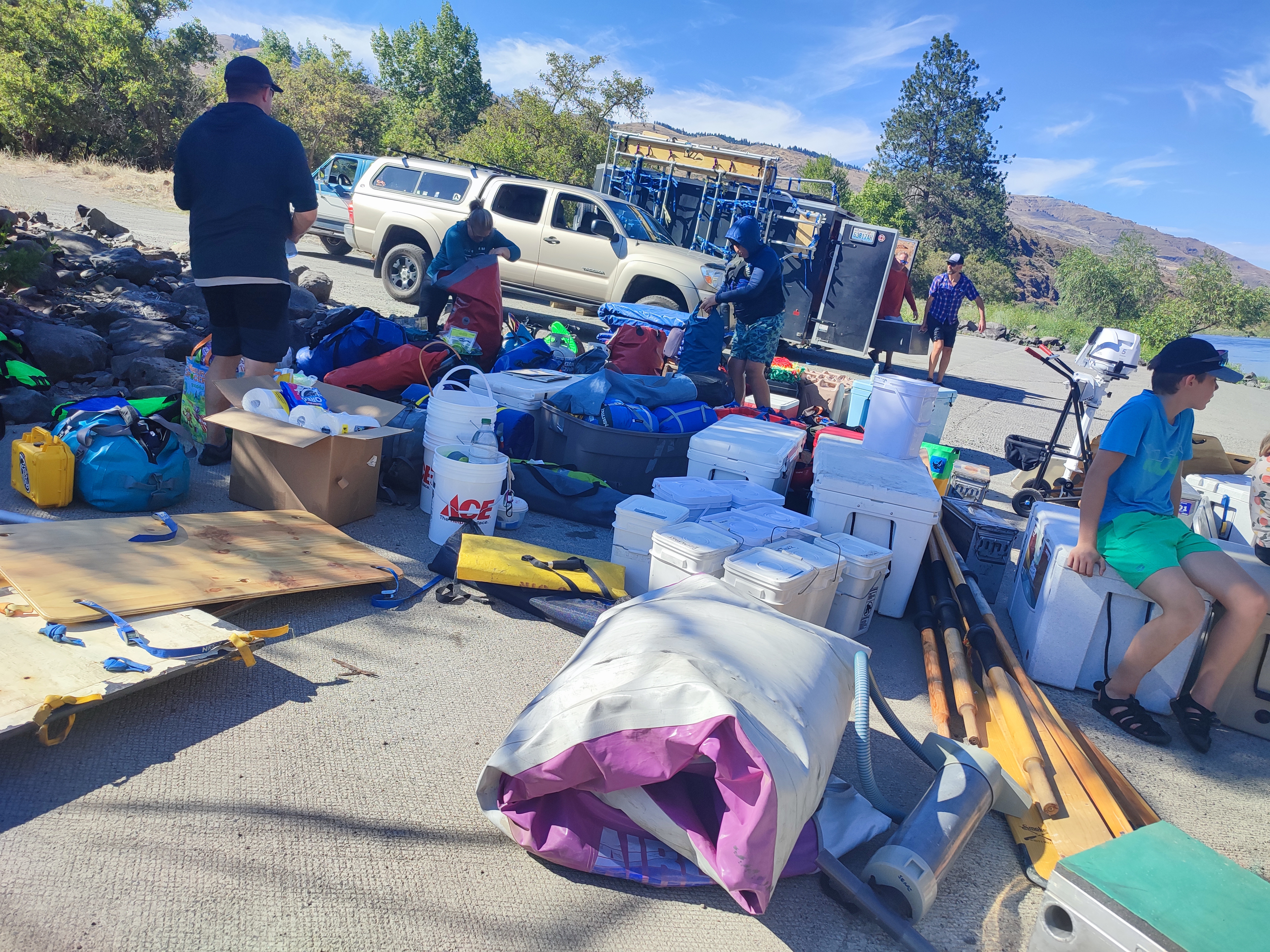 Každý raft je vybaven kovovou konstrukcí, do které se zasazuje potřebné vybavení, a tím jsou: obrovské chladicí boxy, dřevěné krabice plné plastových kontejnerů na suché potraviny a kde co, kanystry s vodou, kýble, vodní pytle, propan-butanové lahve atd. atd.
