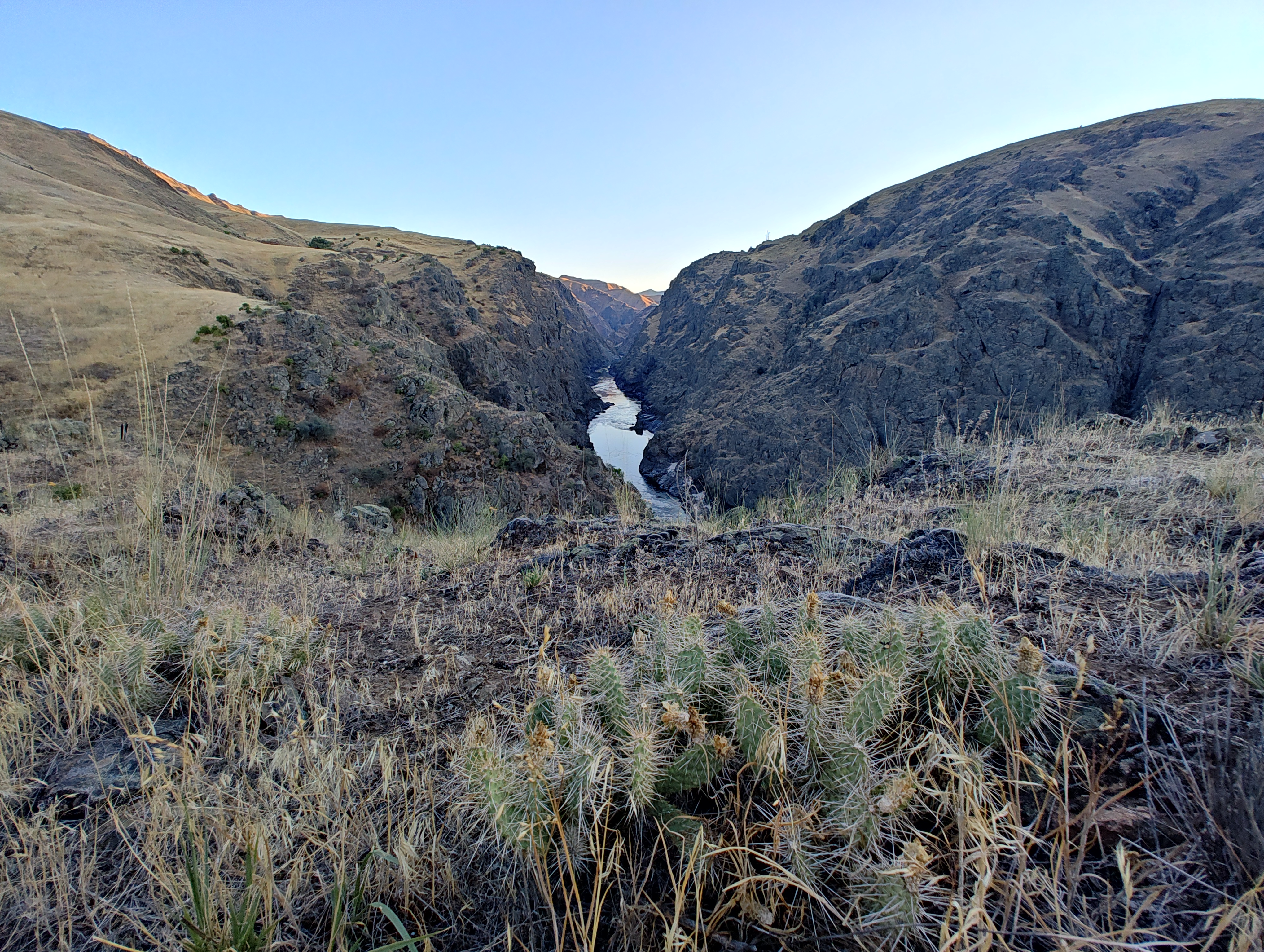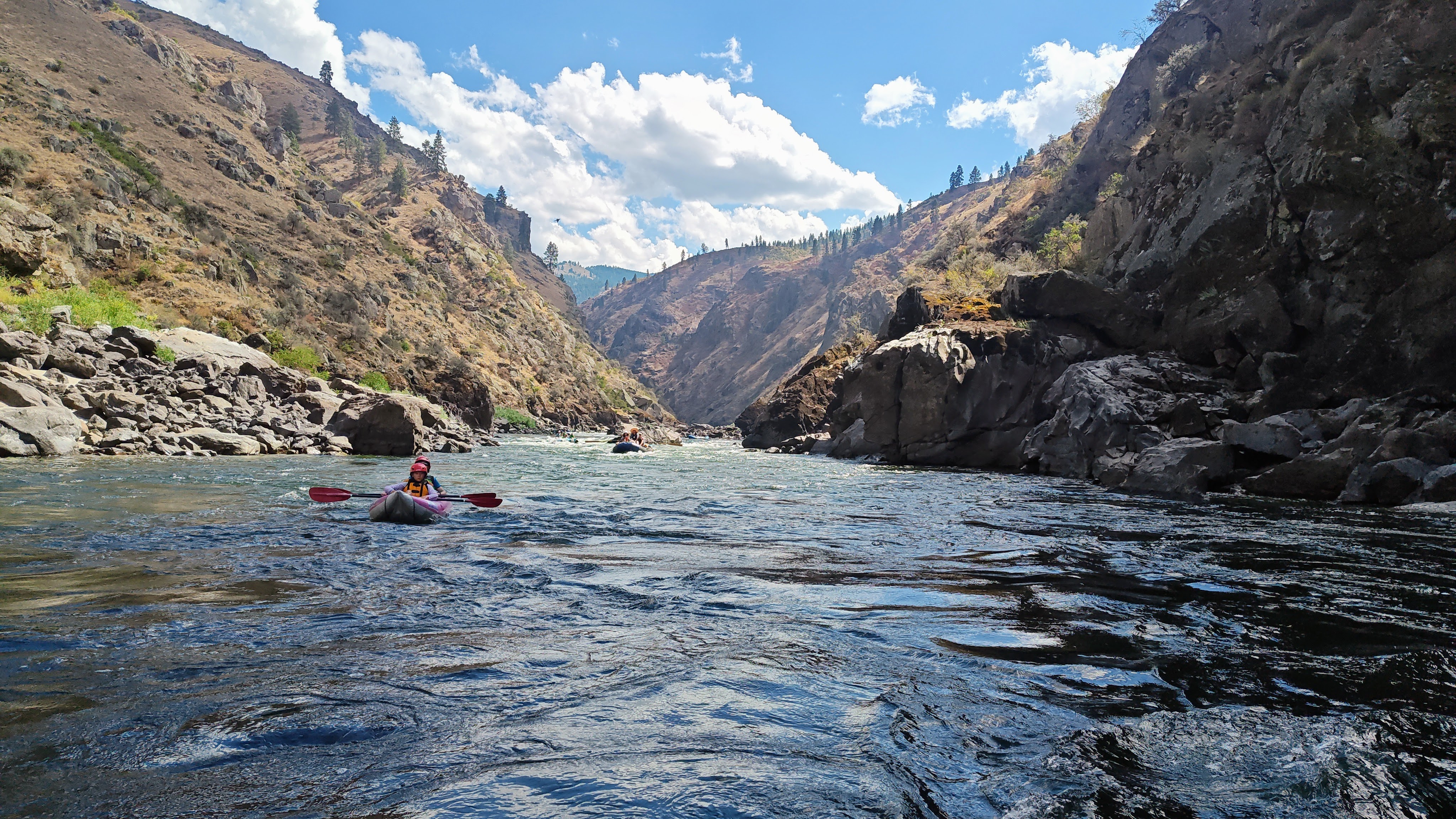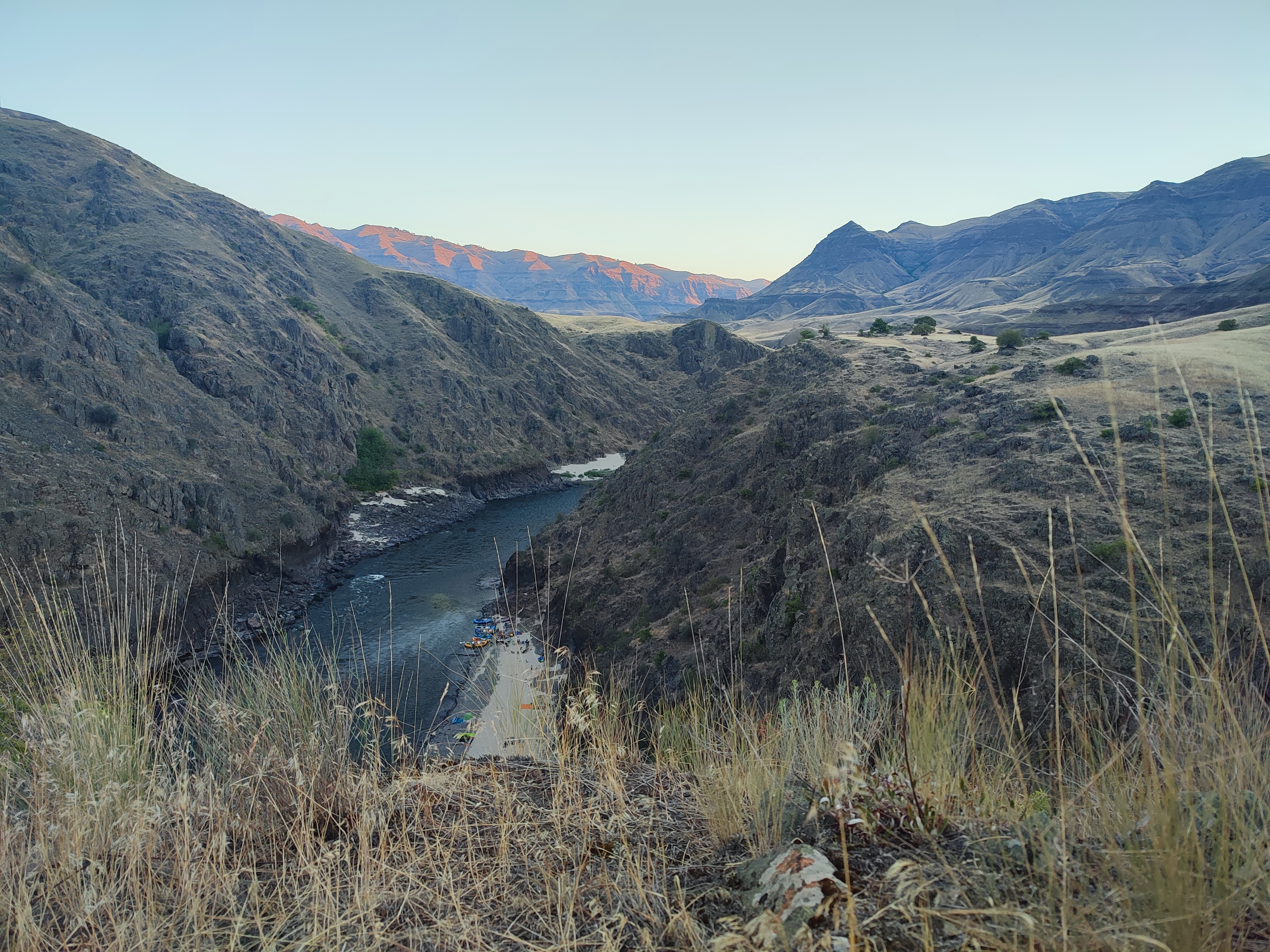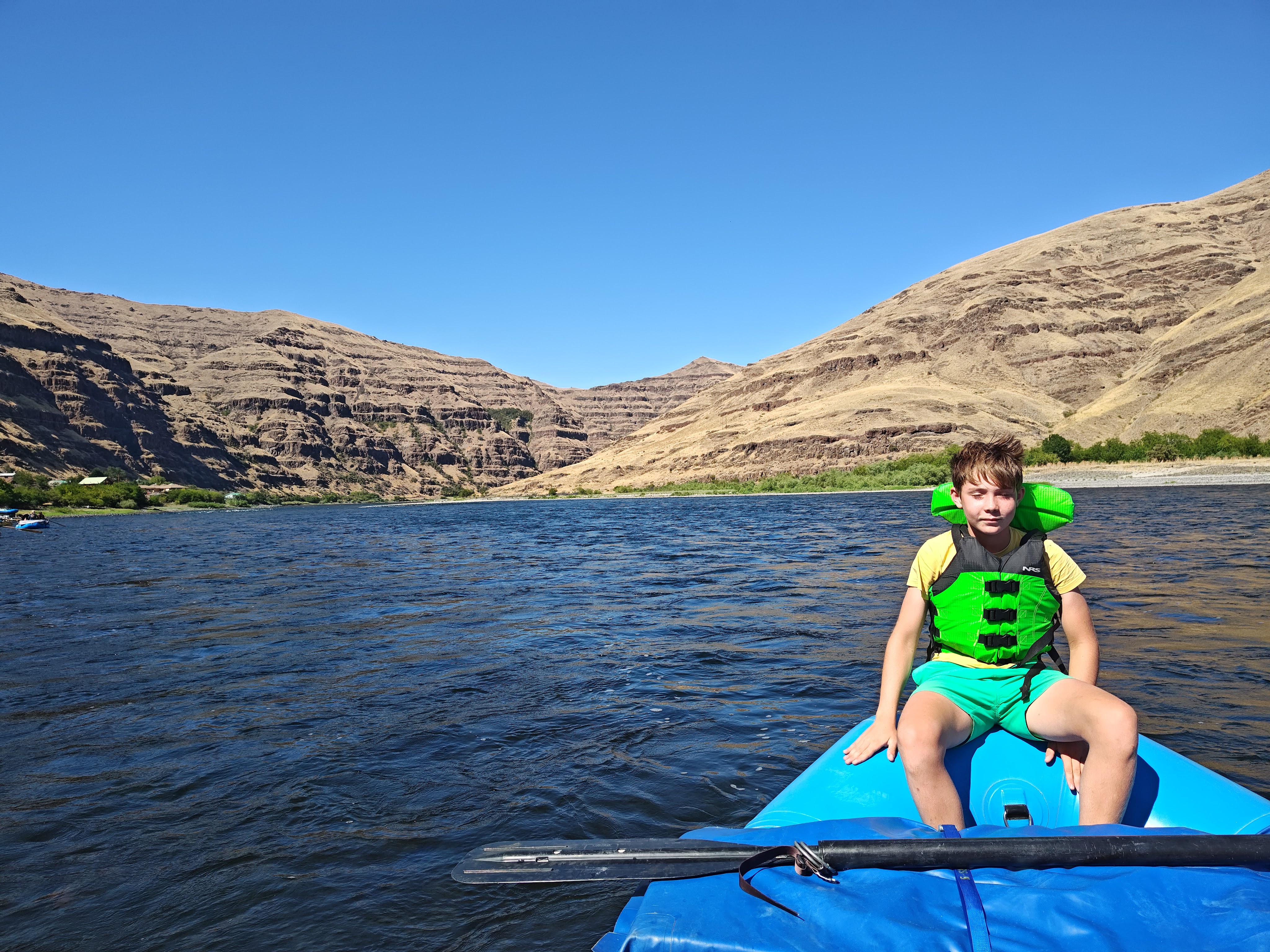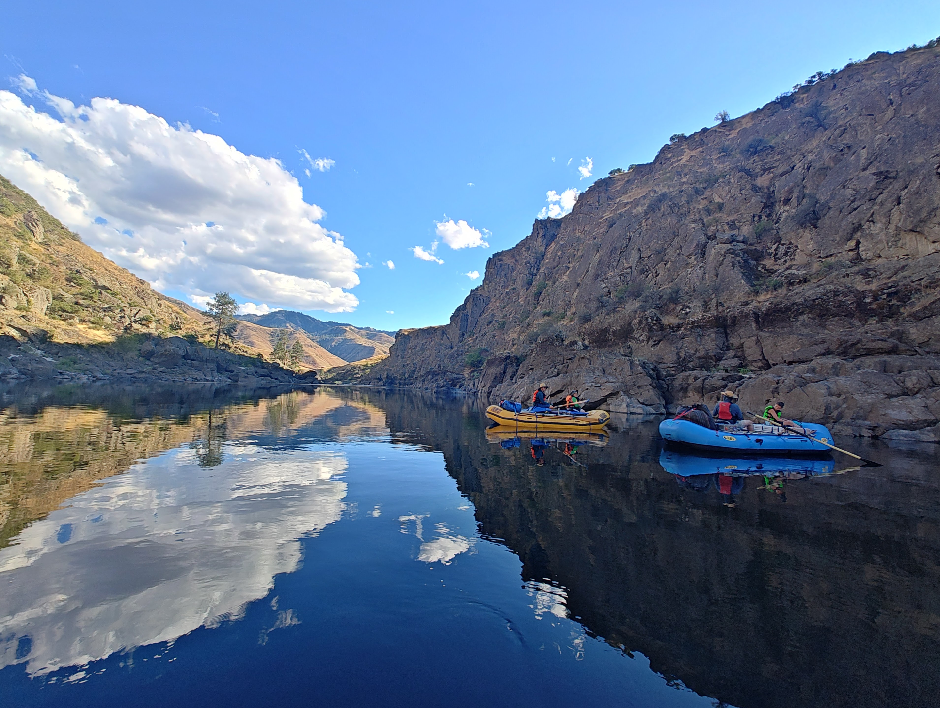 Po soutoku řek Salmon a Snake se významně mění podmínky – kaňon se rozšiřuje a pravidelně zde fouká velmi silný protivítr. V takových podmínkách bychom se nedostali zpět včas a hlavně by nás to totálně utavilo, takže posledních cca 30 km jsme odjeli v soulodí na motor.
