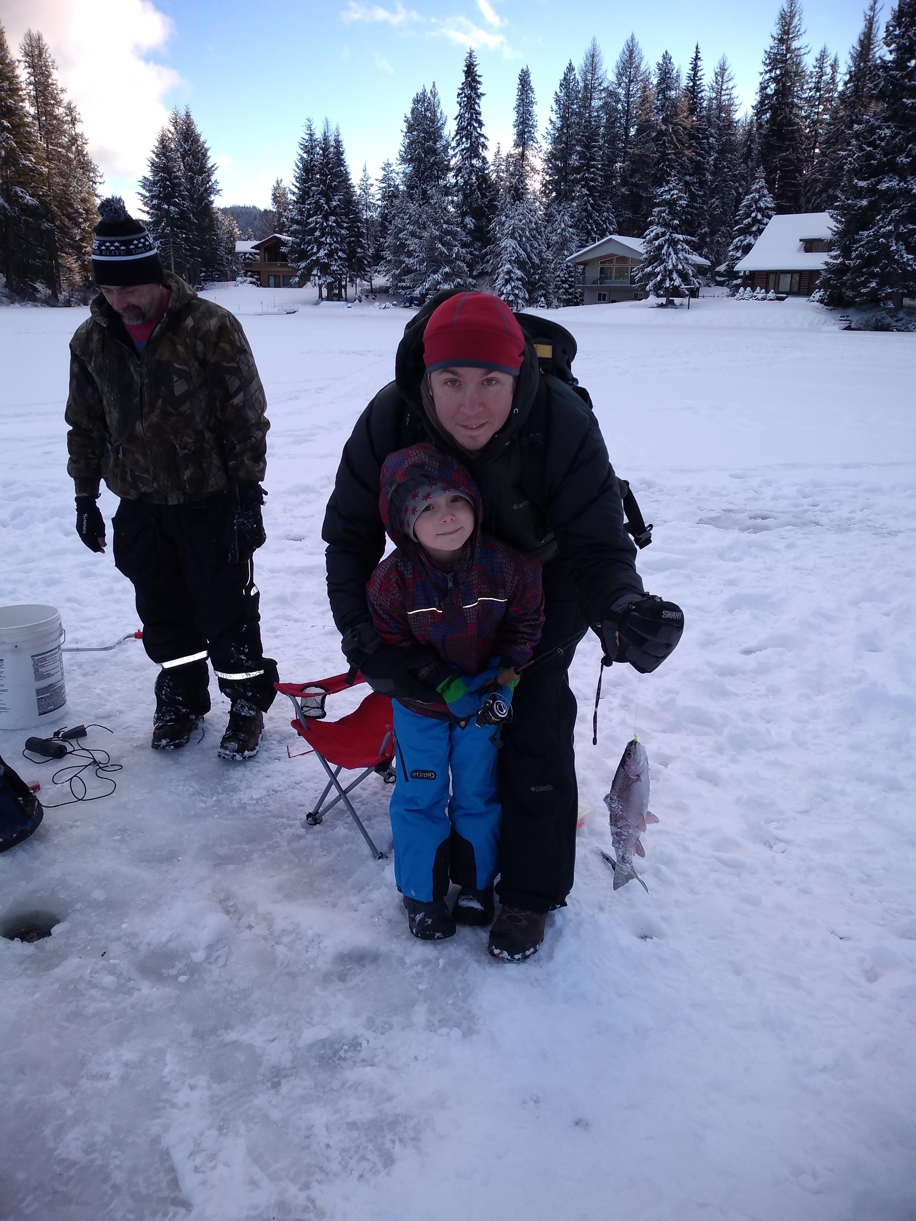S rodinou Tonyho sestřenice jsme se vydali k jezeru Gillette ve státě Washington na “icefishing”. Sice jsme strávili 4 hodiny v autě a pouze 2 na ledu, ale stálo to za to a bylo to tak akorát, aby tam Kája neumrzla. Olí ulovil pstruha duhového (Rainbow Trout) a dalšího dostal jako výslužku. Doma ho pomohl Tonymu vykuchat a než šly ryby na pánev, děti si s nimi stačily ještě roztomile pohrát (viz zde) :-).