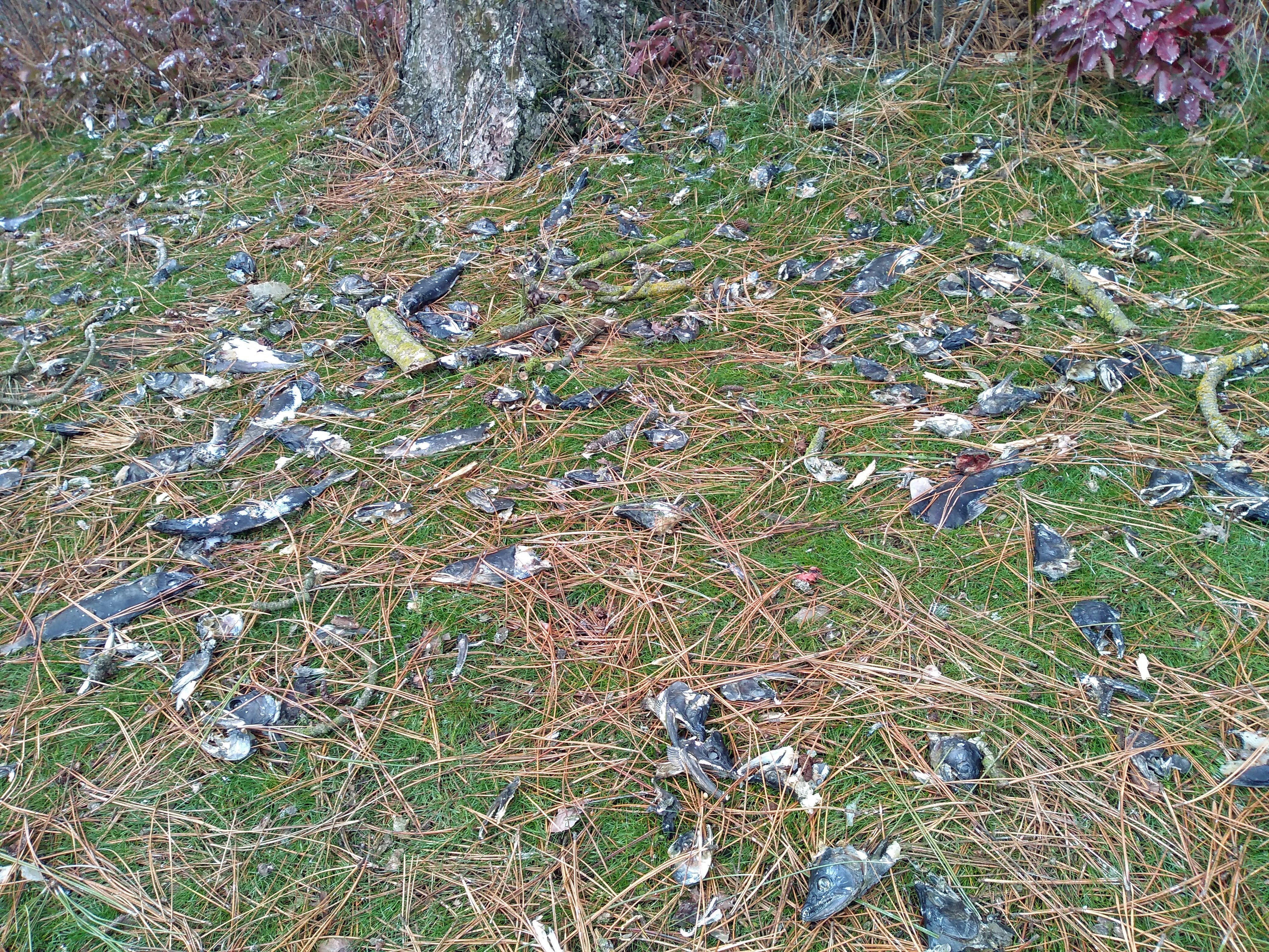 V týdnu jsme se také byli podívat, zda tu ještě pobývají orli, nebo už odtáhli pryč. K vidění je jich už jen pár, zato bordel tu nechali pořádný! Už jste někdy neměli v lese kam pro chcíplou rybu šlápnout? A umíte si představit ten smrad?
