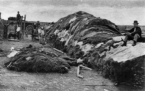 Velmi důležitou úlohu při cestě na západ hrála stáda bizonů. Jejich trus sloužil jako výborné palivo a jejich maso bylo vítaným zpestřením jinak fádního jídelníčku. Stáda byla mnohdy tak obrovská, že se jimi karavany musely doslova prostřílet. Pro indiány byli bizoni životně důležití. Poskytovali jim jak potravu a ošacení, tak i základní nástroje (např. bizoní žaludek sloužil jako nádoba na vaření). Zatímco indiáni dokázali bizona zpracovat prakticky bezezbytku, pionýři za sebou nechávali mršiny a často je stříleli víceméně ze sportu. (Bizoním masem se živili i dělníci během stavby železnice. Ta byla dokončena v roce 1869 a odstartovala další enormní přiliv přistěhovalců. Někteří cestující, víceméně z nudy, stříleli bizony přímo z vlaku.) S vědomím toho, jak jsou pro indiány bizoni důležití, dokázali přistěhovalci za pouhých 90 let původně odhadem 20 až 50 mil. populaci bizonů takřka vymýtit. Kolem roku 1890 zbylo na amerických pláních pouhých tisíc kusů. Lov bizonů se tak stal dalším mocným prostředkem boje přistěhovalců proti původním obyvatelům.