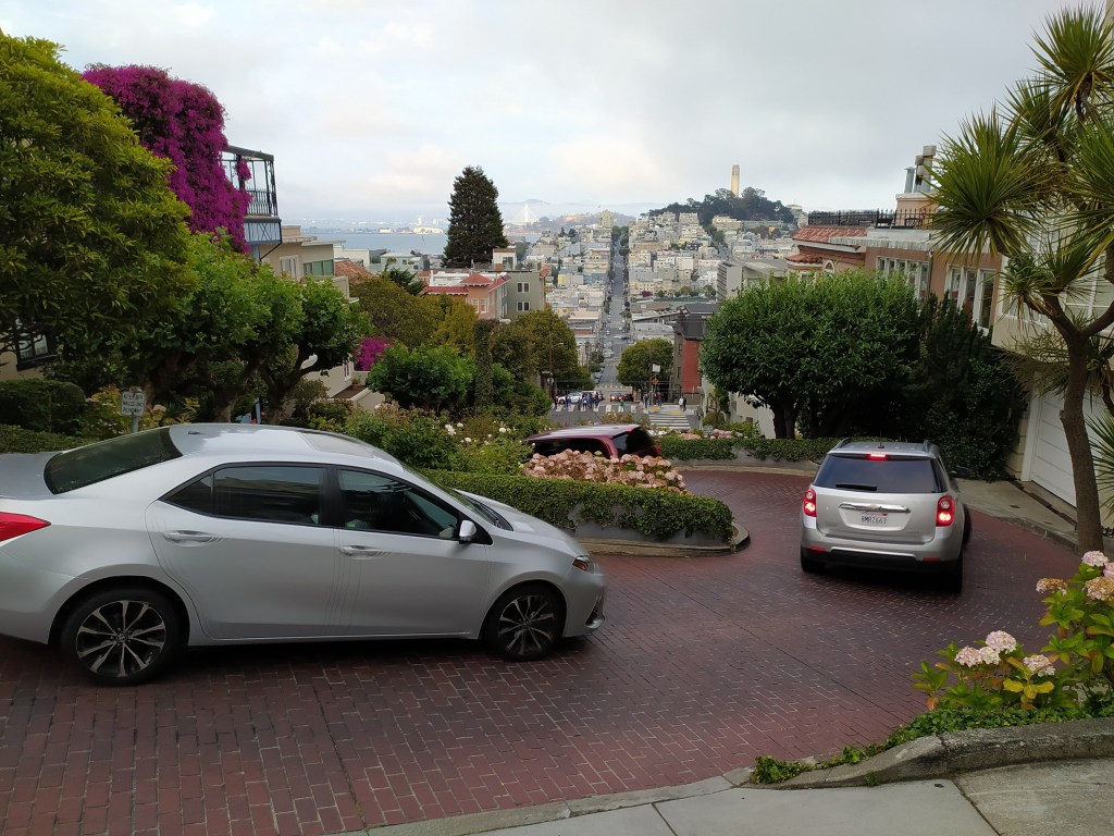 San Francisco je dost kopcovité. Nejstrmější sjízdná ulice Filbert street má sklon 31,5%. Za ní zaostává i nejklikatější ulice na světě, Lombard street, se sklonem 27%. Už se vidím, jak tam tlačím kočárek s nákupem a smekám před všemi, kteří tam musí parkovat.
