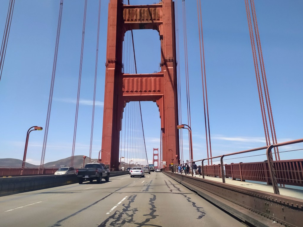 Poměrně zajímavá je údržba mostu (v mnohém připomíná údržbu D5 😉 ). Pracuje na ní kolem 200 stálých zaměstnanců a například natírání mostu je nikdy nekončící proces – natírá se zkrátka pořád. Již od výstavby v roce 1937 se používá tzv. International Orange barva (pro zájemce: RGB #c0362c 🙂 ). Vybrána byla pro svoji dobrou viditelnost a také proto, že její teplý odstín se hodí k barvě okolních pevninských mas.