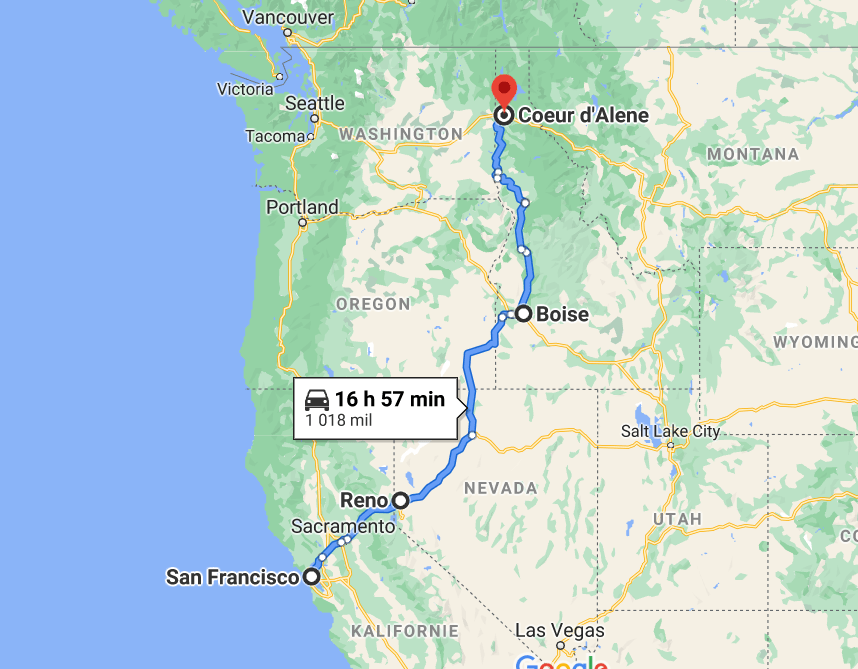 Po dvouleté vynucené pauze jsme se opět vydali na cestu. Čeká nás 5 týdnů v západní části Spojených států. V plánu máme přejezd ze San Francisca (Kalifornie), přes Reno (Nevada), Boise (Idaho) až do našeho srdečního města Coeur d’Alene (Idaho), kde a v jehož okolí strávíme poslední tři týdny.