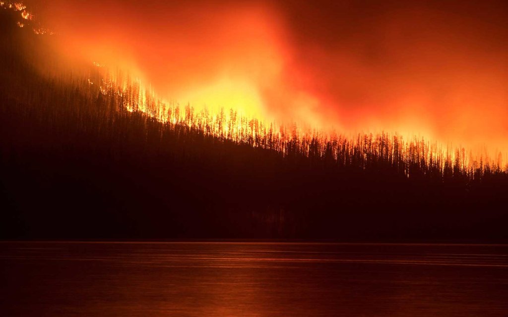Požár způsobený bleskem devastuje Glacier National Park ve státě Montana. (Park je od nás asi 240 km vzdušnou čarou, ale autem skoro 5h.) Požár zatím není pod kontrolou a spálil už více než 30 km². Naposledy tu oheň řádil v roce 2003. Je to smutný pohled :-(.