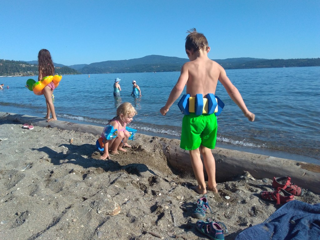 Léto užíváme na plné pecky. Máme to asi 200m k obrovskému a neuvěřitelně čistému jezeru, tak jsme tam skoro každý den. Ve městě je tu spousta parků a dětských hřišť, různé water parky.. Dneska jsme byli s BMX parku (Olí se rozhodl, že tomu místu bude říkat Nižbor 🙂 ), tak se Olí s bratránkem vyřádili na kolech. A když už jsem u toho bratránka (bude mu 10 a narodil se až když se Tony odstěhoval), na dnešek u nás spal a ráno se Tonyho ptal, jestli se Tony narodil tady nebo v ČR… docela úsměvné. Zatím k sobě s Tonyho sestrou a jejími dětmi hledáme cestu. Jsou nadšení, že jsme tu, hodně srdeční, laskaví, ale přeci jen styl života mají odlišný než my.